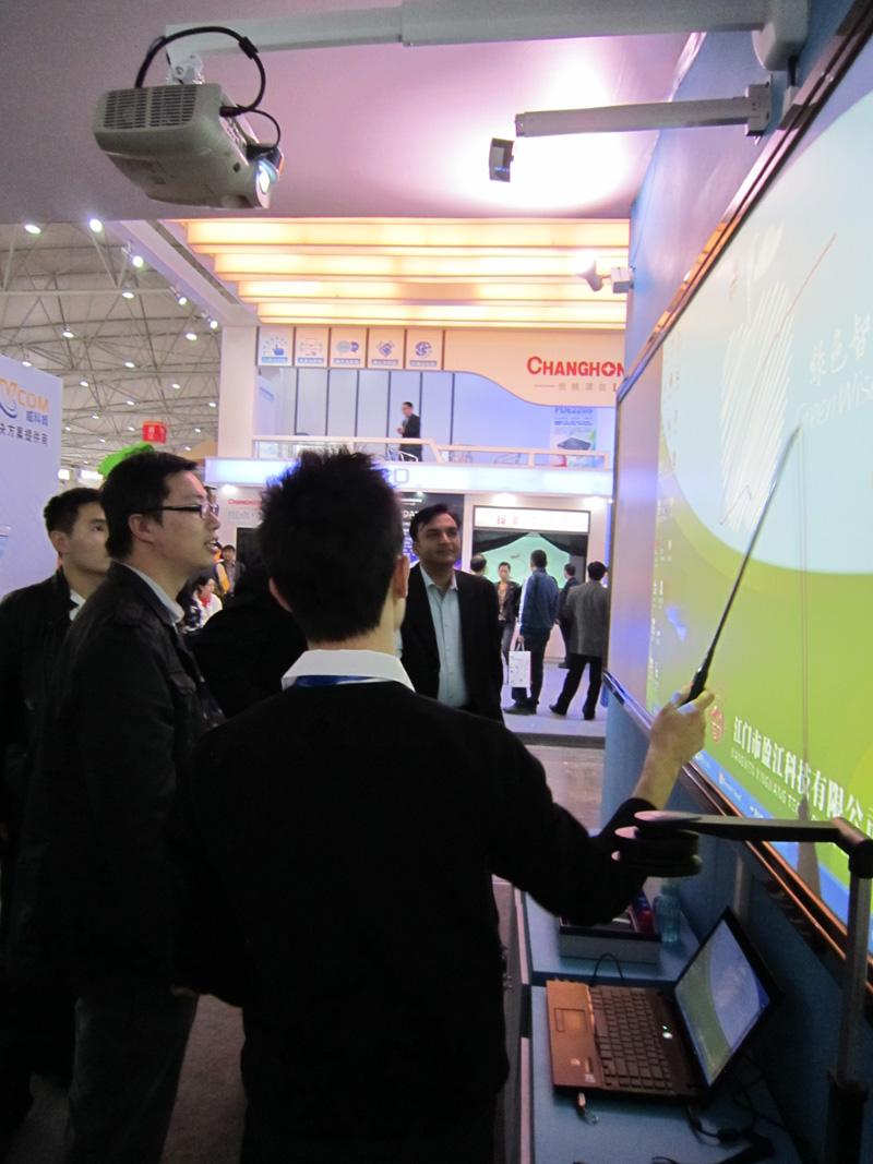 我司在展會上一如以往的展示了富江牌德康系列的環(huán)保產(chǎn)品:互動短焦投影機、多功能教學板、水性環(huán)保教學筆套裝、互動短焦接收器、備課王。
